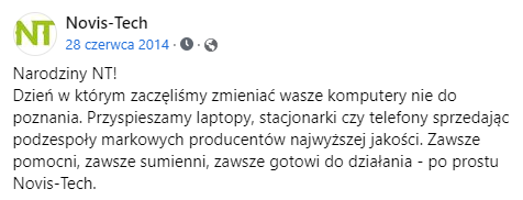 Pracujemy w kameralnym gronie, dlatego codziennie dajemy z siebie 200%, aby każdy klient był zadowolony z dokonanego zakupu. Niezmiennie od 2014 roku pogłębiamy swoją specjalistyczną wiedzę z zakresu IT. Stawiamy na dokładność oraz rzetelną i fachową obsługę klienta. Specjalizujemy się w handlu krajowym, jak i zagranicznym. Zaopatrujemy liczne przedsiębiorstwa, instytucje publiczne oraz niepubliczne, jak i również z takim samym zaangażowaniem dbamy o klientów detalicznych. Dzięki licznym transakcjom nasz sprzęt trafia do różnych środowisk zarówno w Polsce, jak i w Europie, czy Hong-Kongu. Cenimy sobie uczciwość oraz dbamy o bezpieczeństwo każdej z transakcji. W naszej ofercie znajdziesz szeroką gamę sprzętu elektronicznego; posiadamy komponenty nowe, używane, poleasingowe lub refurbishowane. Każdy sprzęt poddajemy wnikliwym testom, aby zapewnić naszym klientom towar najwyższej jakości oraz sprawności. Znajdziesz u nas produkty renomowanych producentów: Asus, Dell, HP, Lenovo, Fujitsu, Kingston, Samsung, Hynix, Gigabyte, AsRock, MSI, Acer, Nvidia, Intel, AMD, Toshiba, WD, Seagate, Adata, oraz wiele, wiele innych. Świadczymy również szeroko pojęte usługi w dziedzinie naprawy oraz serwisu. Nieprzerwanie poszerzamy naszą wiedzę oraz zdobywamy nowe doświadczenia, aby sprostać nawet najbardziej wymagającym klientom. To właśnie dla Was każdego dnia staramy się podnosić nasze standardy, bo to dzięki Wam Novis-Tech łapie wiatr w żagle.